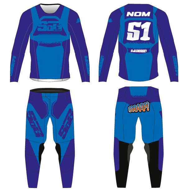 Choisis les couleurs de ta tenue, intègres-y tes sponsors, ton nom, ton prénom, ton numéro, ton buttpatch.